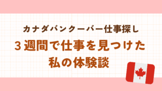 カナダ 3週間で仕事を見つけた私の体験談|カナダバンクーバー仕事探し こんにちは、よもぎです。 今回の記事では、バンクーバーでワーホリ中の私が「3週間で仕事を見つけた体験談」と、「仕事を見つけるために気を付けていたこと」について詳しくお伝えしようと思います。 私は、カナダ含め2か国で仕事探しをし... 2025.09.24 カナダ仕事探し